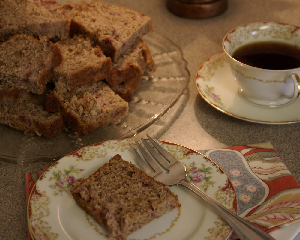 Last week I tried Lemon Banana Bread. Very good, with just a touch of lemon. Today it was Strawberry Walnut Bread. This may be my all time personal favorite. Very simple, very yummy, very moist and actually pretty healthy if you forget about the sugar and concentrate on the walnuts and strawberries instead.
