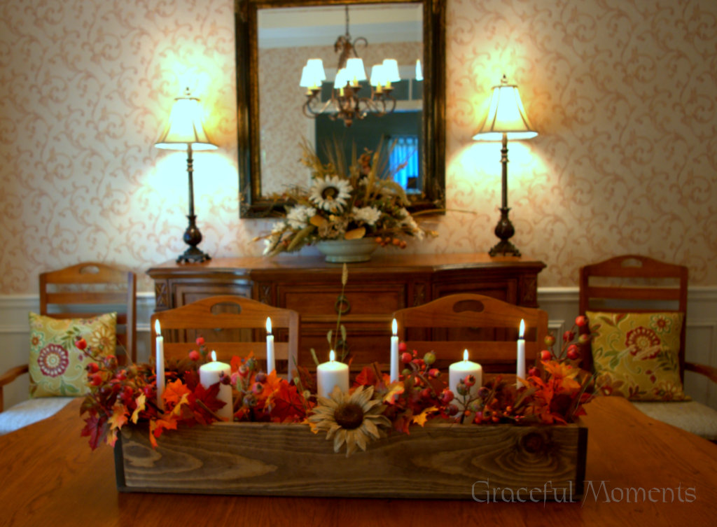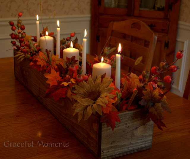 Although I have assisted in building things over the years on our farm and am quite handy with power tools, my woodworking projects so far, have been limited to chalk board frames and this plain wooden box for my dining room table, which is the subject of this post. I plan to use it to decorate for the different seasons. The idea for the box was not original to me. A friend shared this Pinterest photo on Facebook and it looked simple enough so I decided to make it. The photo linked to 724 South House and their tutorial. I loved how Tricia used hers, so I gathered all the materials and made it. I am quite pleased with how it turned out. I did have a bit of help from my husband. He helped me hold things together and helped me clamp the pieces and he was really handy with the saw. This might be a hobby we will be sharing!