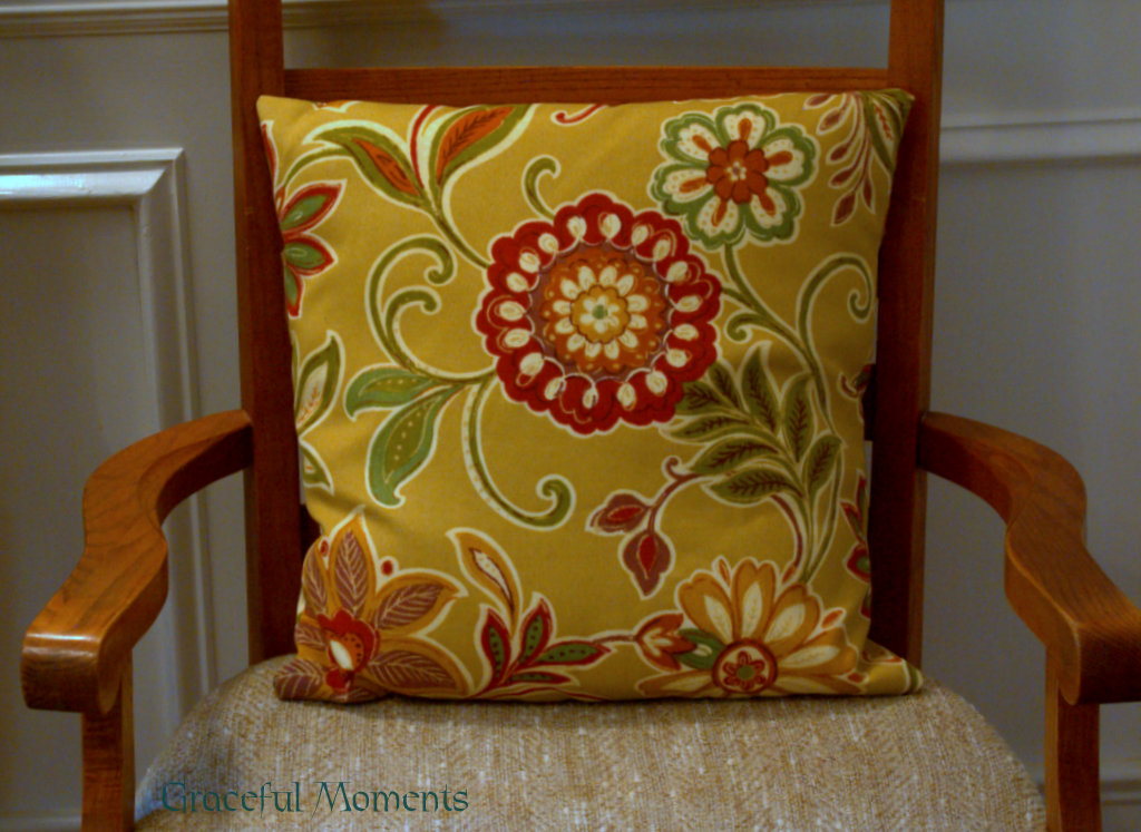 The pillows in the above photo are two I made this week. Actually, I made the covers and put them on an IKEA 20×20 pillow insert. The fabric was originally purchased to be used on our screened porch (a story for later,) but I am using them in the house this fall because the colors are perfect for fall and with all the rain, we haven’t been using the porch much.