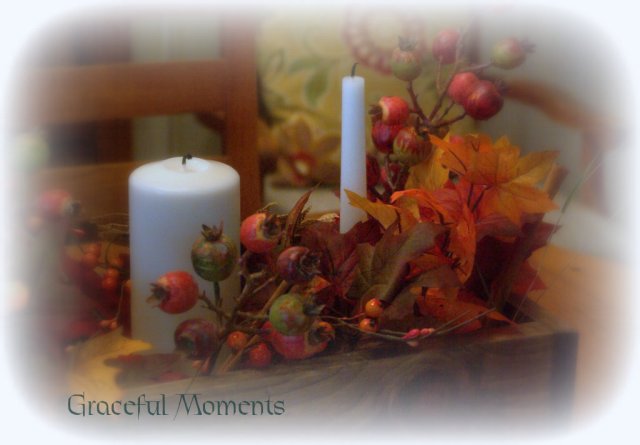 I am going to add some pine cones to the arrangement as soon as I can find them. They are packed with the Christmas decorations. Maybe for spring, I will use small vases with fresh, cut flowers.