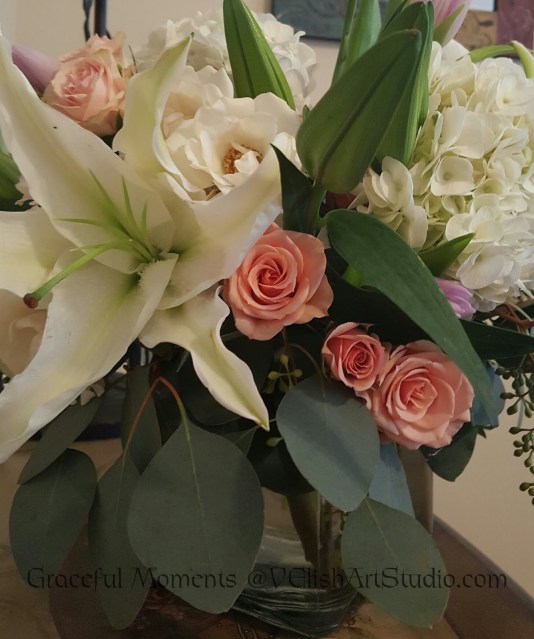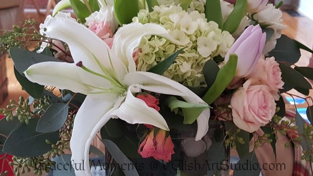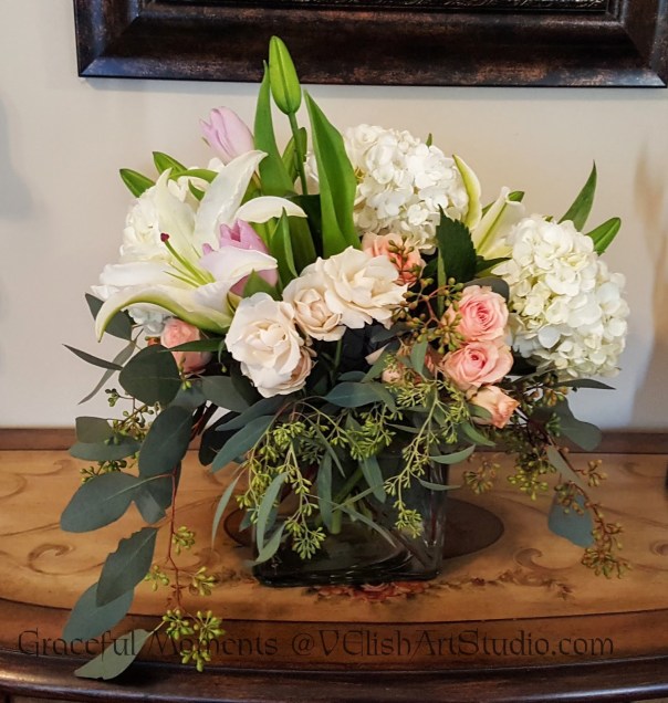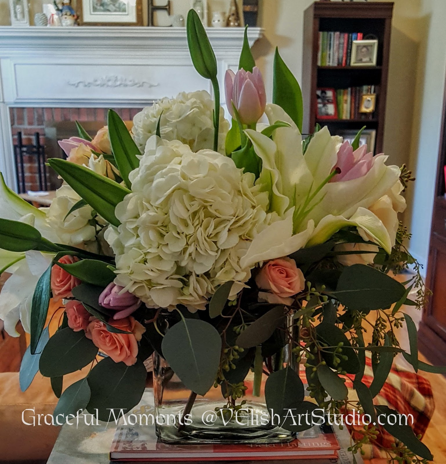 I have a touch of early spring fever and have been playing with my watercolors. I was inspired by the beautiful flowers I received from my husband for Valentine’s Day.