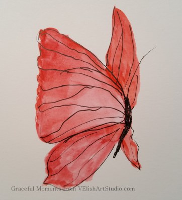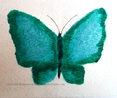 Always wondering what to paint next, a niece helped me out by suggesting a butterfly. Butterflies probably sound easy to paint. Four wings and a body in the middle. Right? Well, they are not easy for me. I’m pretty sure I had never painted one before these. Butterflies are definitely beautiful and a favorite to watch, but for some reason, I am more of a dragonfly person when it comes to photographs and paintings. Perhaps because so many people do paint and photograph butterflies as I quickly found when turning to Google Images for inspiration and technical assistance. It was more than a bit overwhelming to see all of the different wing shapes, wing sizes, and colors. I did several sketches of wing shapes and sets and then prepared to paint. The “research” time was not included in the total time of each painting.