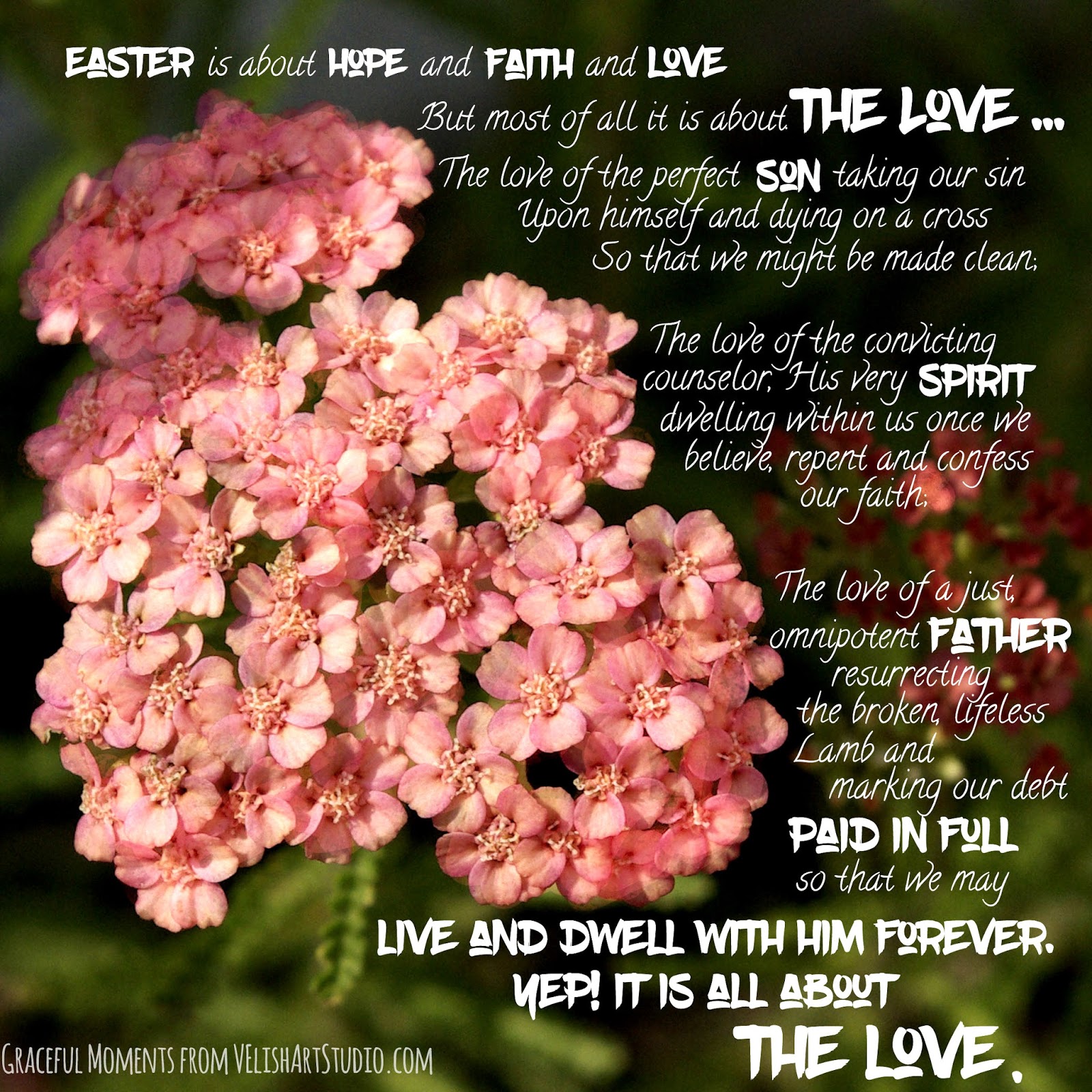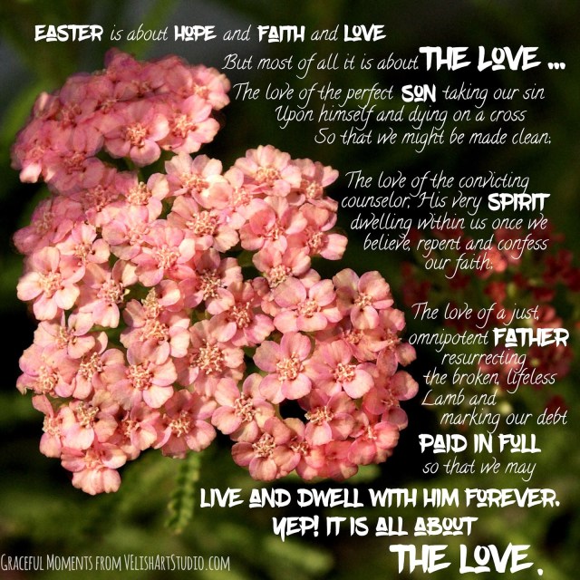 I was browsing through Pinterest the other day. I realized just how tired I am of bunnies, chicks and eggs everywhere. While I understand the symbolism and don’t really have a problem with it, I fear too much of the cute stuff hides the real message that is Easter. So, I put some thoughts on paper and then combined them with a photograph and thought I would share it with you. Sort of my Easter gift to you.